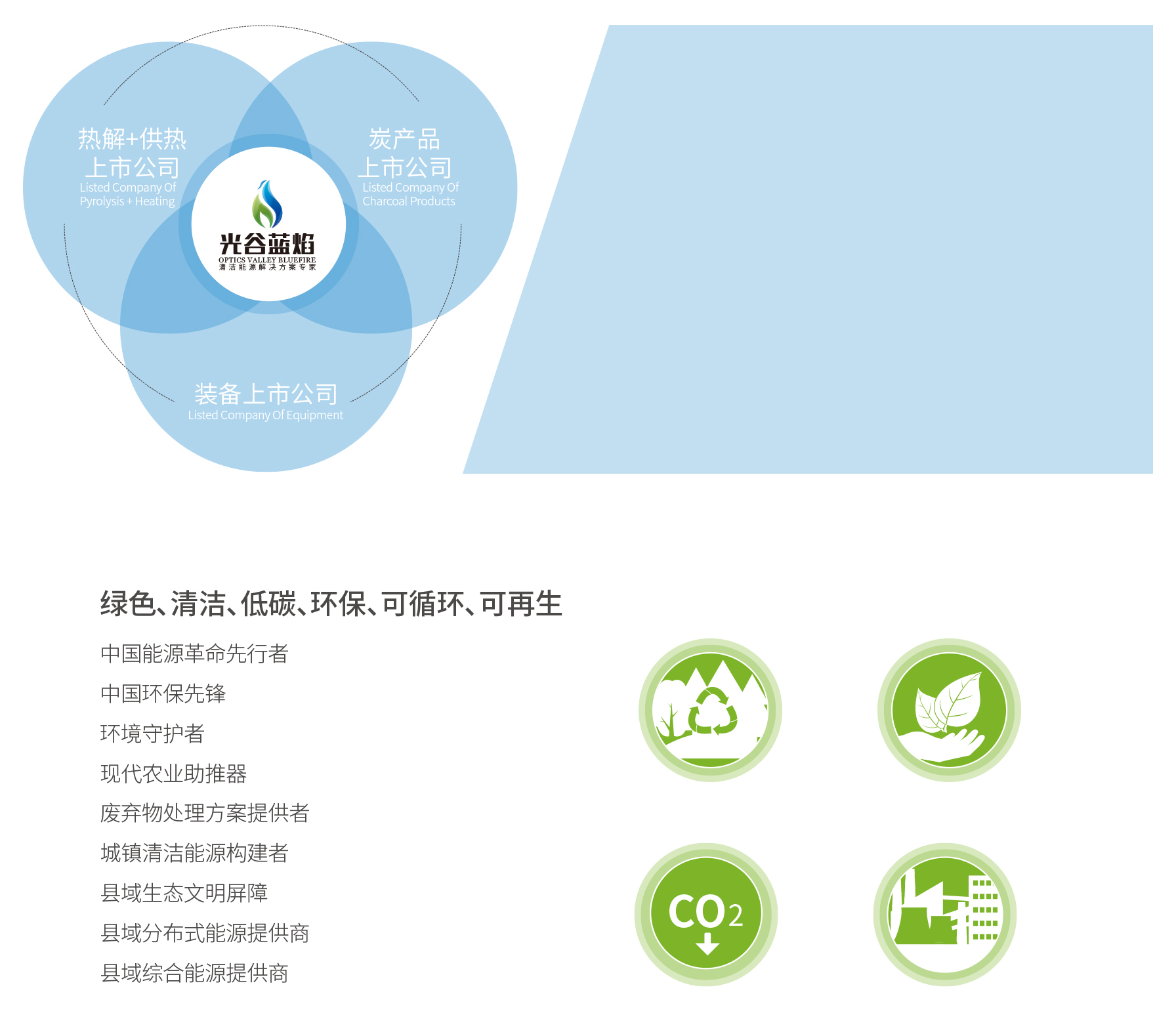 2020年,光谷藍(lán)焰規(guī)劃實(shí)現(xiàn)IPO,進(jìn)一步增強(qiáng)資本實(shí)力,并打造集“熱解&供熱+炭產(chǎn)品+裝備”三大事業(yè)部為一體的,國(guó)內(nèi)生物質(zhì)能源行業(yè)的大型上市企業(yè),引領(lǐng)中國(guó)生物質(zhì)能源行業(yè),在國(guó)際市場(chǎng)占據(jù)重要地位。