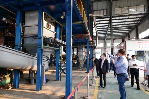 會前,鄂州藍焰公司總經(jīng)理何濤引領與會人員參觀了公司農(nóng)業(yè)廢棄物綜合利用技術裝備和生產(chǎn)車間,詳細介紹了鄂州藍焰公司農(nóng)業(yè)廢棄物收集、粉碎、儲運和熱解生產(chǎn)工藝全流程,展示了將農(nóng)林廢棄物“吃干榨盡、變廢為寶”的技術優(yōu)勢,首次實現(xiàn)了農(nóng)林廢棄物能源化、高值化、清潔化利用和環(huán)保條件下的工業(yè)化、循環(huán)利用的生產(chǎn)模式,引起與會人員極大的興趣和好評。